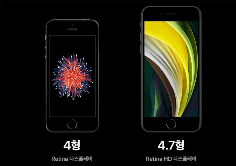 아이폰Se 1세대는 4인치 화면 크기를 가지고 있고 아이폰Se2는 4.7인치의 화면 사이즈를 가지고 있습니다. 두개의 모델 모두 레티나 디스플레이로 LCD 디스플레이입니다.