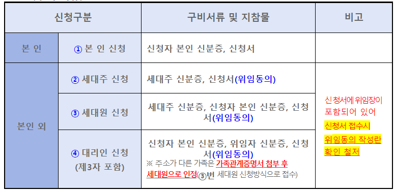 - 신청방법: 읍면동 주민센터 방문(신분증 지참)